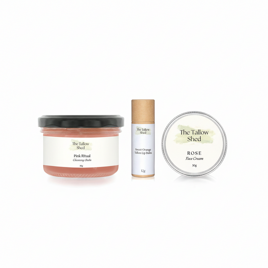 Skincare is simplest in nature’s hands. With vitamin‑rich tallow that mirrors our skin’s natural oils, our products nourish gently. Carefully blended with botanicals and essential oils for calm, healthy radiance.